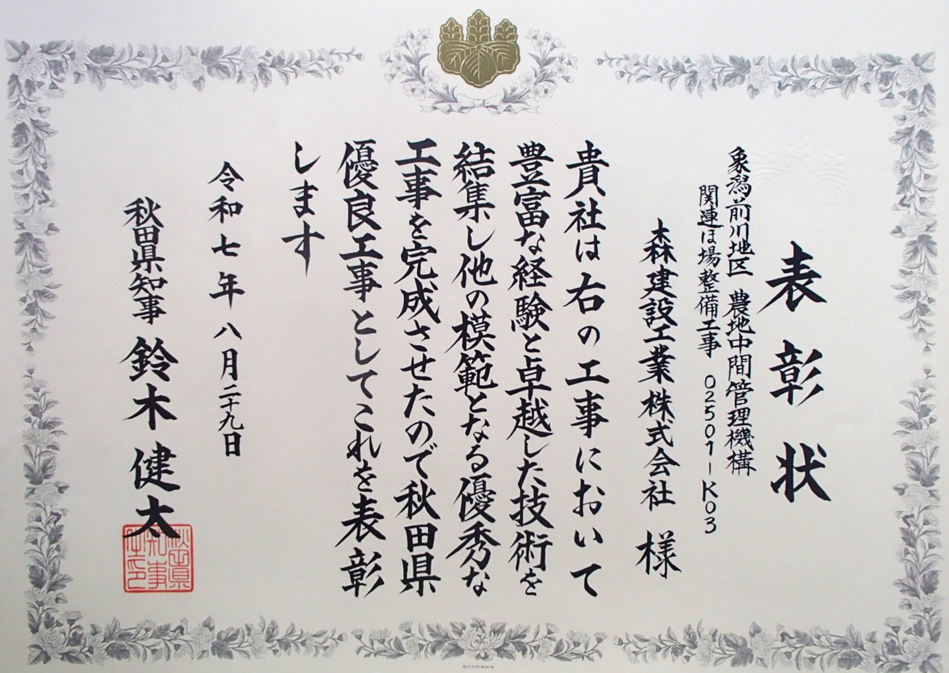 森建設工業は創業以来、土木工事を基盤とした総合建設業として、より豊かで安全・安心な地域社会の構築に取り組んでまいりました。
